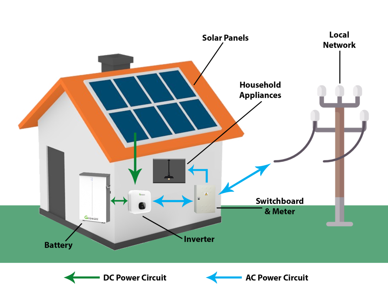 Sunterra’s Home Battery System intelligently manages the generated solar power firstly to the loads. Only the excess power is used to charge the batteries. Battery discharging only takes place during times of high consumption, night-time and during times of limited solar production, resulting in improved overall efficiency of the system and extended battery life. Therefore, the self-consumption of solar energy will be optimised.