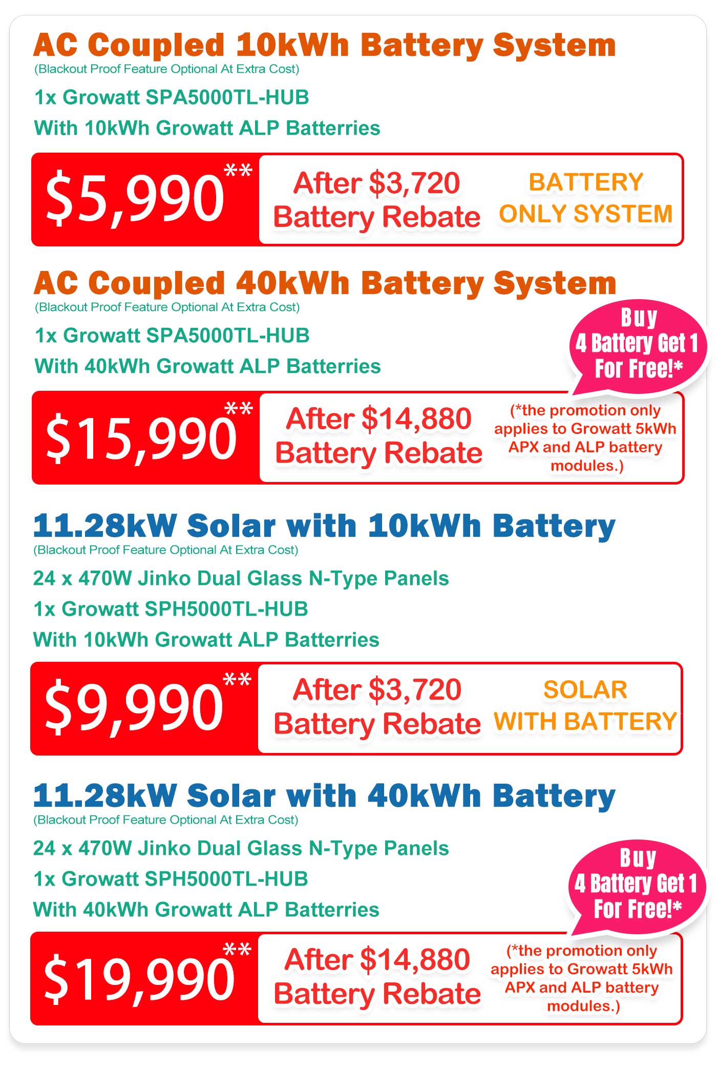 ****** This promotion only applies to Battery Only Systems with Growatt ALP battery.